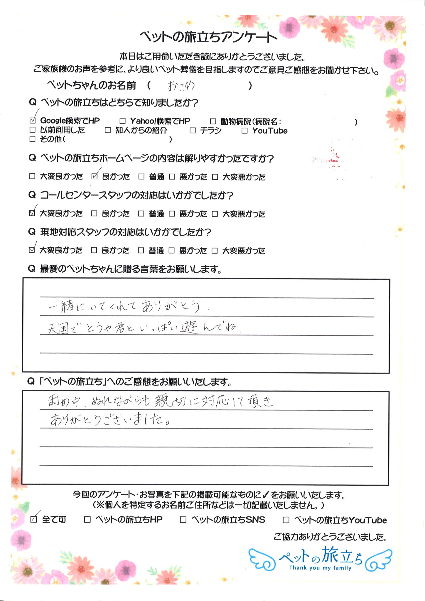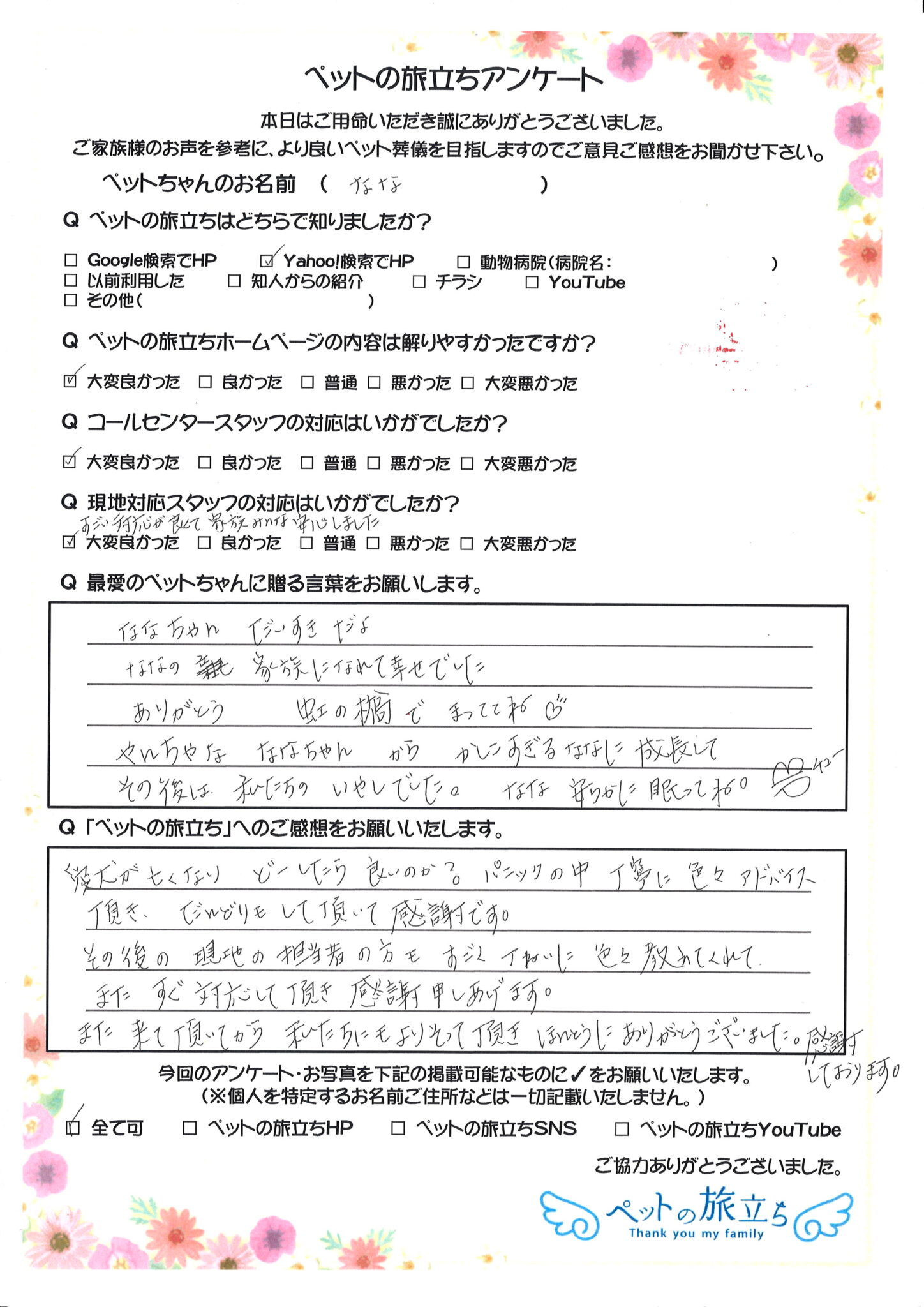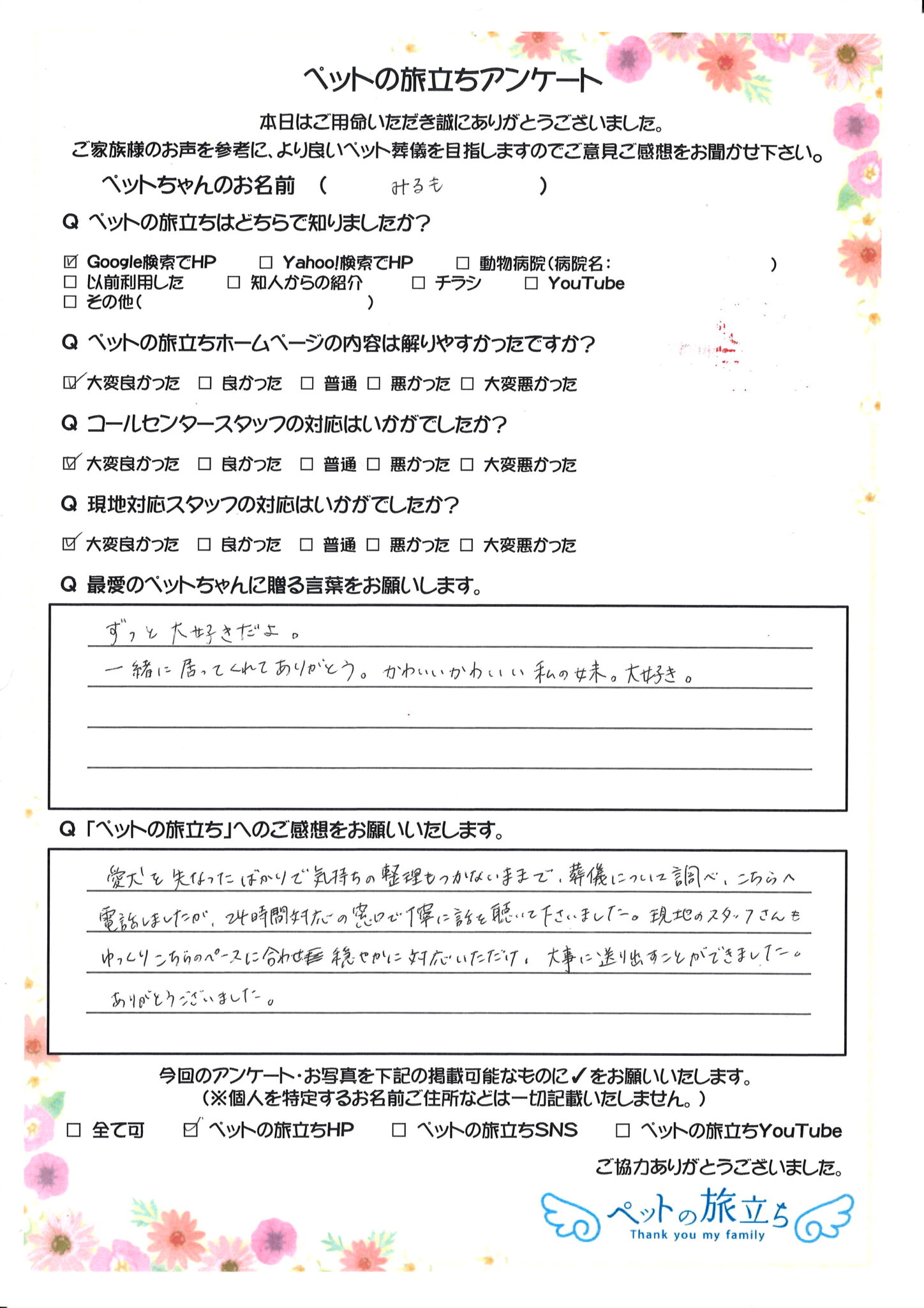 ペットちゃんは家族の一員であり、かけがえのない存在です。