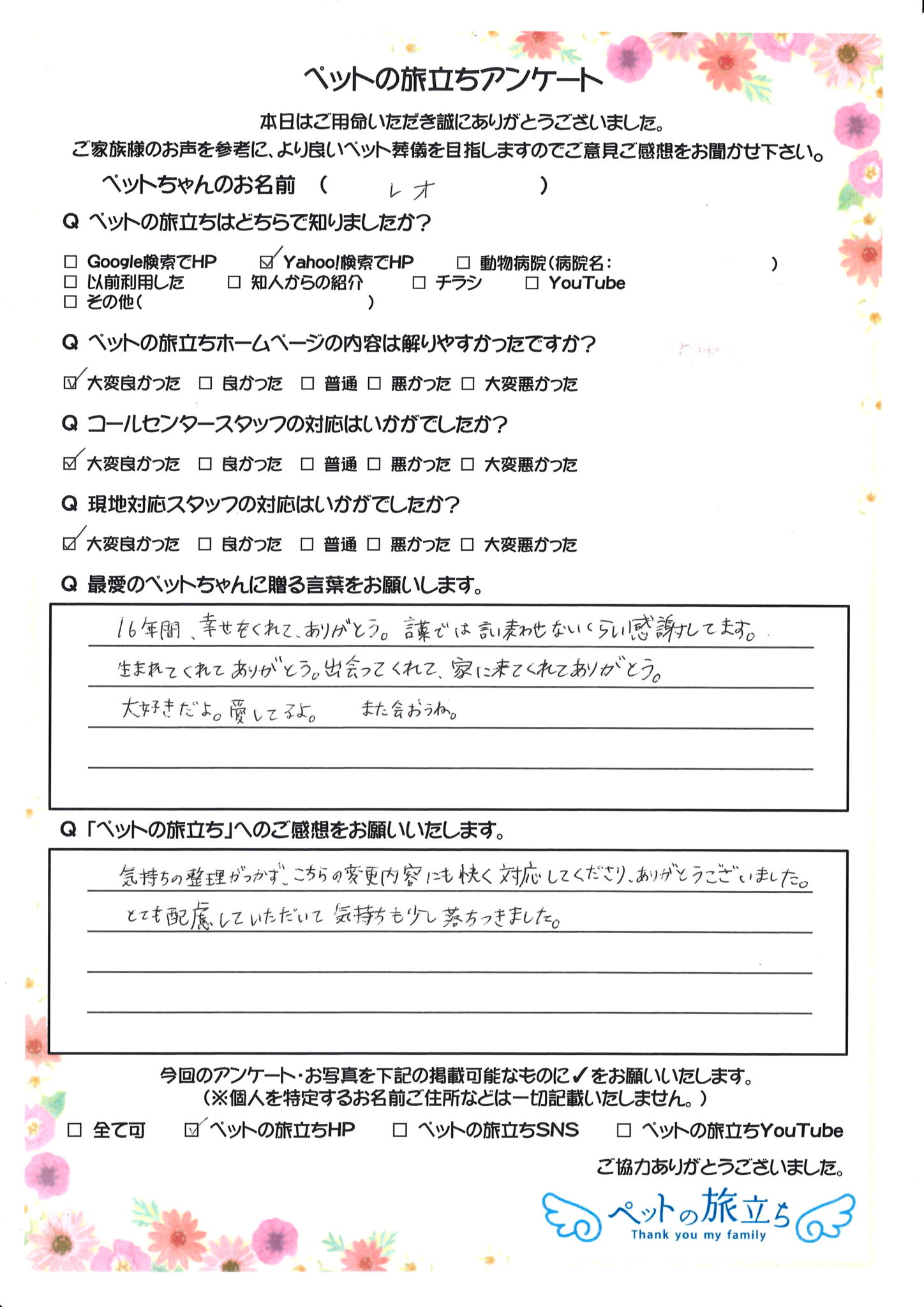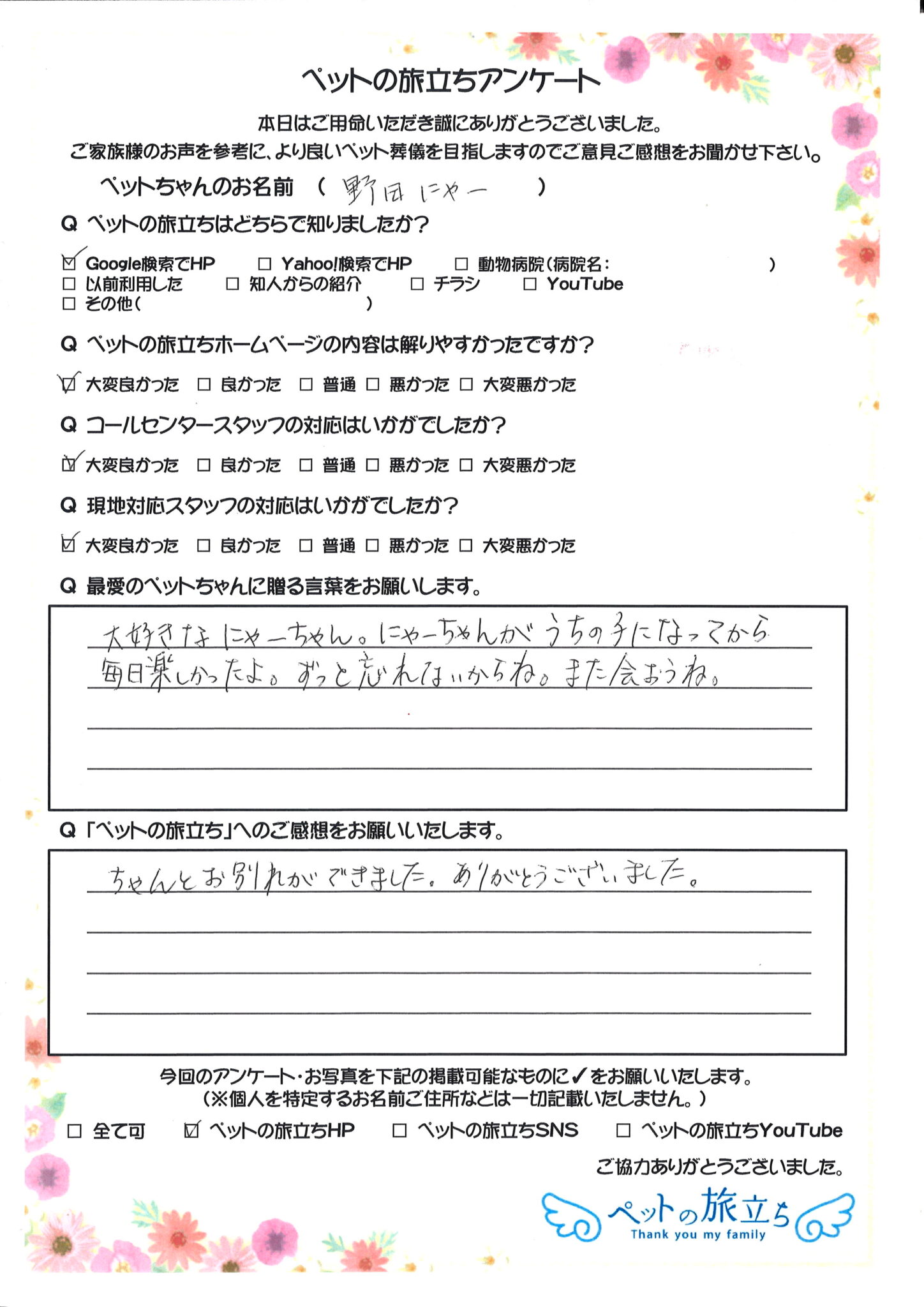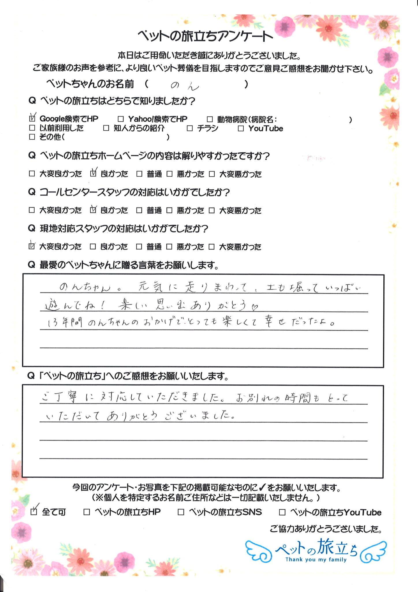 ペットちゃんは家族の一員であり、かけがえのない存在です。
